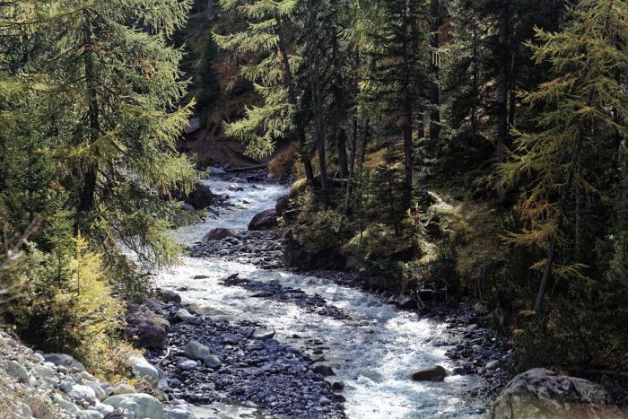 Um uns an die Höhenluft zu gewöhnen, machen wir eine gemütliche Wanderung von der Passhöhe nach Lü. Wir wandern durch Föhren- und Arvenwald, über Alpmatten bis zum höchsten Dorf des Tales auf 1920 m.