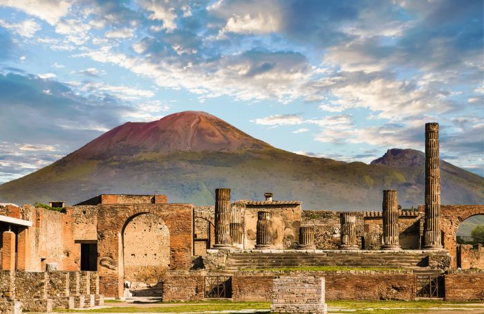 Besuch der Ausgrabungen von Pompeji. Die Stadt wurde 79 n. Chr. durch den Vesuvausbruch verschüttet und konserviert. Wir erkunden Strassenzüge, Thermen, Wohnhäuser und Gipsabdrücke der Opfer. Die Nutzung von Tuffstein und fruchtbaren Böden zeigt, wie die Vulkanlandschaft das Leben prägte – obwohl die Gefahr nicht erkannt wurde.