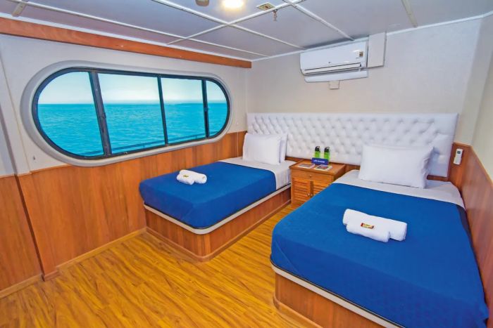 | Katamaran «TIP TOP II» Die «M/C TIP TOP II» wurde 2008 gebaut und 2015-2016 renoviert, um das höchste Maß an Komfort zu bieten. Die «TIP TOP II» bietet 16 Passagieren in 10 klimatisierten Kabinen Platz, je mit Privatdusche/WC, Föhn und Sicherheitsbox. Eine Bar, ein Essraum und ein Aufenthaltsraum sowie vor allem auch ein Sonnendeck gewähren einen angenehmen Aufenthalt an Bord. Alle Sicherheitsausrüstungen entsprechen den Bestimmungen der Internationalen Küstenwache. Bei einer Gruppengrösse von 14 Teilnehmenden steht die «TIP TOP II» exklusiv zur Verfügung. Bei weniger Teilnehmenden können noch Gäste von auswärts dazu gebucht werden. Die Schiffs-Crew besteht aus Kapitän, mehrsprachiger Reiseleitung, Ingenieur, Koch, Kellner und zwei Seeleuten. Einige technische Angaben 31.50 m lang, Tiefgang von 1,55 m, Geschwindigkeit 12 Knoten, Twin Detroit Diesel MTU 350 PS Hauptmotoren, Twin 60 KW John Deere / Marathon (M) Stromaggregate, Wasserabscheider, Abwasserbehandlungssystem Raritan Marine Sanitation Device. Westfalia Separator Mineralölsysteme. WMSQ-2500 Umkehrosmose-Entsalzungssystem. | ||||